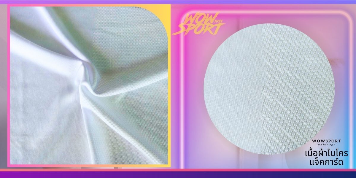 คุณสมบัติ : ผ้าแจ็คการ์ดเป็นผ้าที่มีลวดลายในตัว สามารถออกแบบให้มีลวดลายต่างๆได้ โดยใช้เครื่องทอแจ็คการ์ด ผ้าที่ได้จะมีลวดลายตั้งแต่แรกโดยไม่ต้องนำมาผ่านการพิมพ์ ให้ความรู้สึกพรีเมียม สวยงาม เนื้อผ้าแจ็คการ์ดที่ทำจากเส้นใยไมโครมักจะผสมเส้นด้าย2ชนิดให้มีขนาดแตกต่างกัน เมื่อย้อมออกมาแล้วจะเห็นลวดลายของผ้าชัดเจน มีความนุ่มลื่น สวมใส่สบาย นิยมนำไปทำ เสื้อบอล เสื้อโปโล เสื้อกอล์ฟ และเสื้อยูนิฟอร์มต่างๆ สามารถพิมพ์ซับลิเมชั่นได้